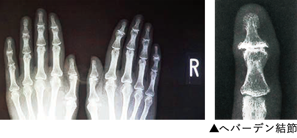 へバーデン結節は、外来診療において中高年女性に比較的よくみられる病気であり、日常生活の支障、痛みとともに関節リウマチではないかと心配して来られる患者さんが多いです。