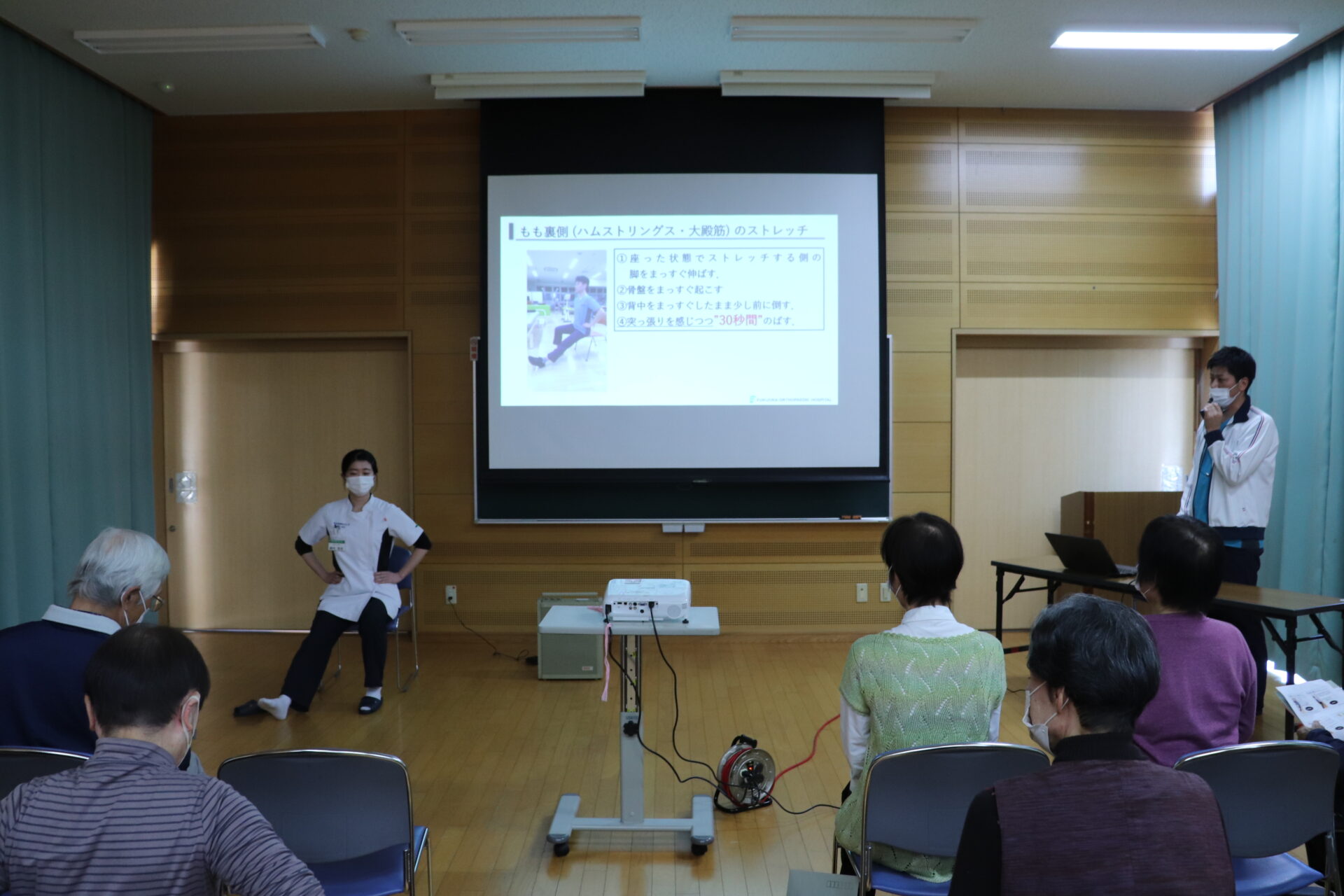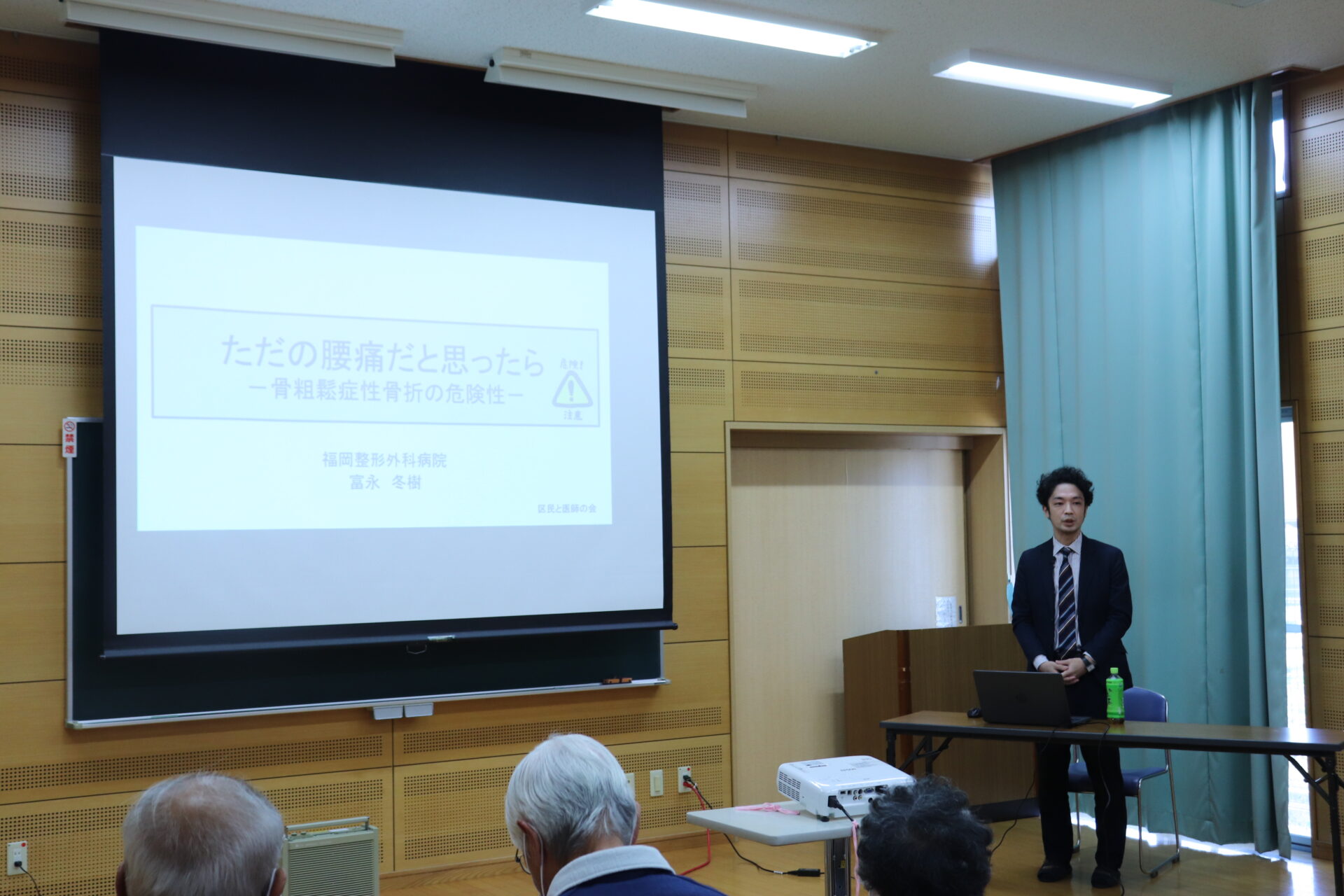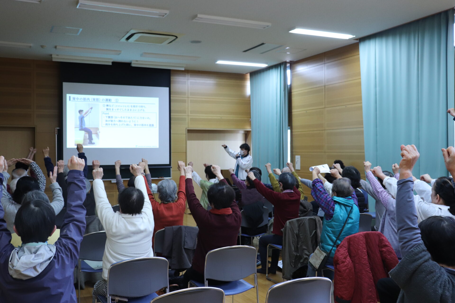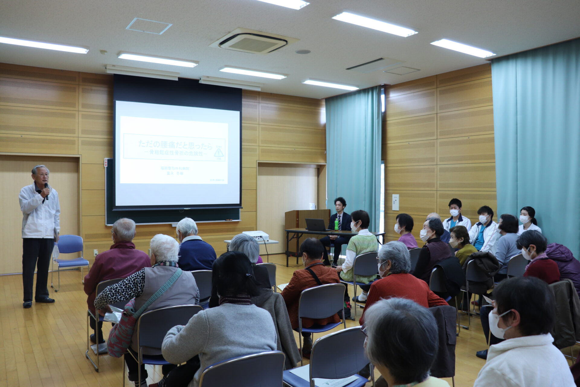 「区民と医師の会」は昭和51年の南区医師会発足を機に、南区独自のボランティア活動として始められました。 今回は「腰痛について」というテーマを軸に、富永冬樹医師がスライドを用いながら講演、リハビリ職員によるストレッチ講座を行いました。 たくさんの方にご参加いただき大変有意義な時間となりました。 当講演の準備にご尽力いただいた関係者の皆様、ありがとうございました。
