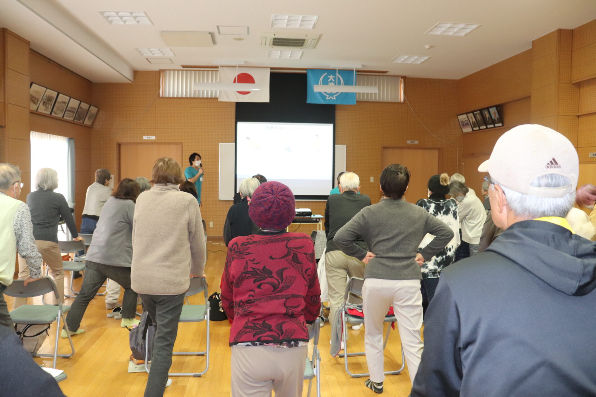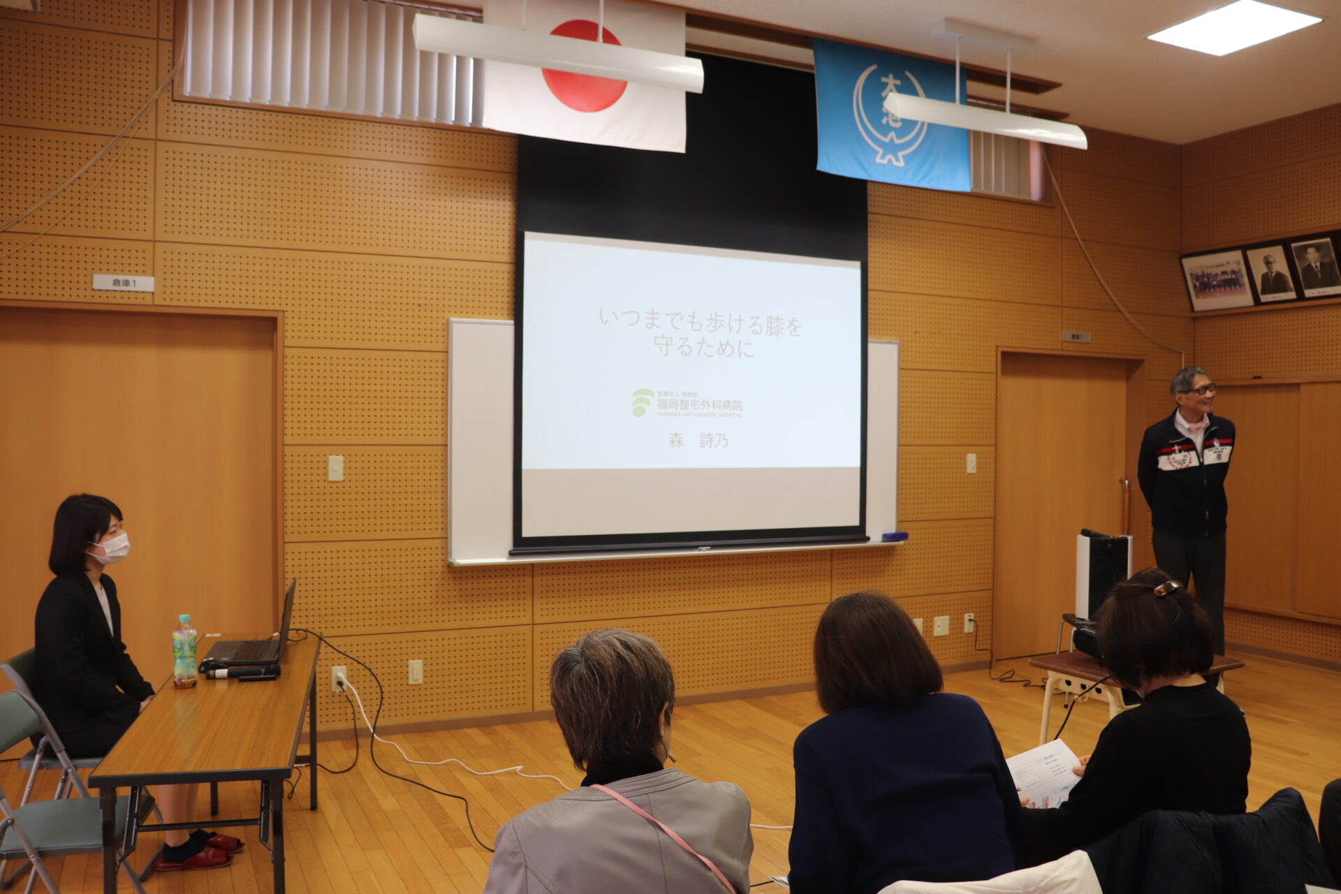 今回は「膝について」というテーマを軸に、森詩乃医師がスライドを用いながら講演、リハビリ職員によるストレッチ講座を行いました。 たくさんの方にご参加いただき大変有意義な時間となりました。 当講演の準備にご尽力いただいた関係者の皆様、ありがとうございました。当日の様子