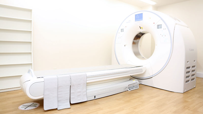 CTはX線発生器を体の周りで回転させてデータを取ることで、体の断面図や立体的な3D画像を作る事ができる機器で、特に骨の描出が得意です。今まで使っていた機種は1cmずつしかデータを取れなかったため、検査中に息を止めていただく時間が長くなっていました。